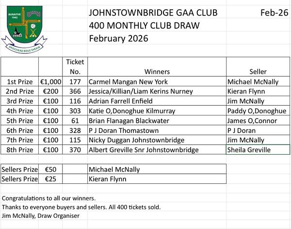 Thank you for your continued support of our draw!