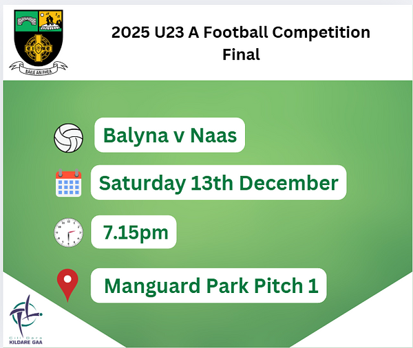 The Balyna U23 final has been rescehduled for this Saturday December 13th at 7.15pm in Manguard Park.